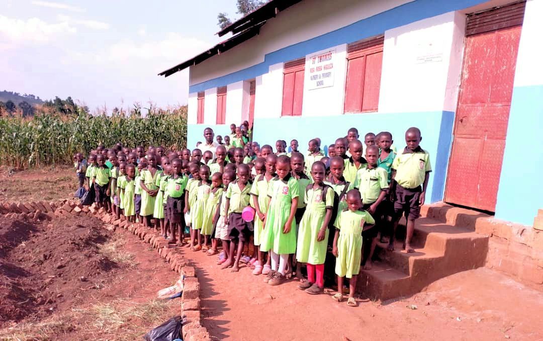 Rosa Rossa ha completato la Scuola "Saint Thomas - Rosa Rossa" nel profondo ovest dell'Uganda, al confine con il Congo. E' l'unico edificio in mattoni del distretto.