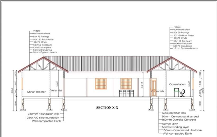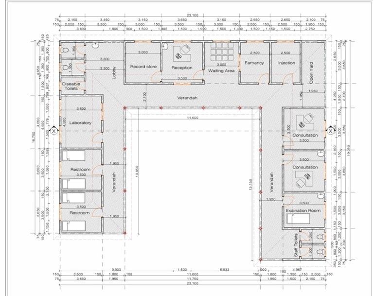 typical C-shaped Tanzanian rural hospital, measuring approx. 3000 square feet plus a courtyard.
