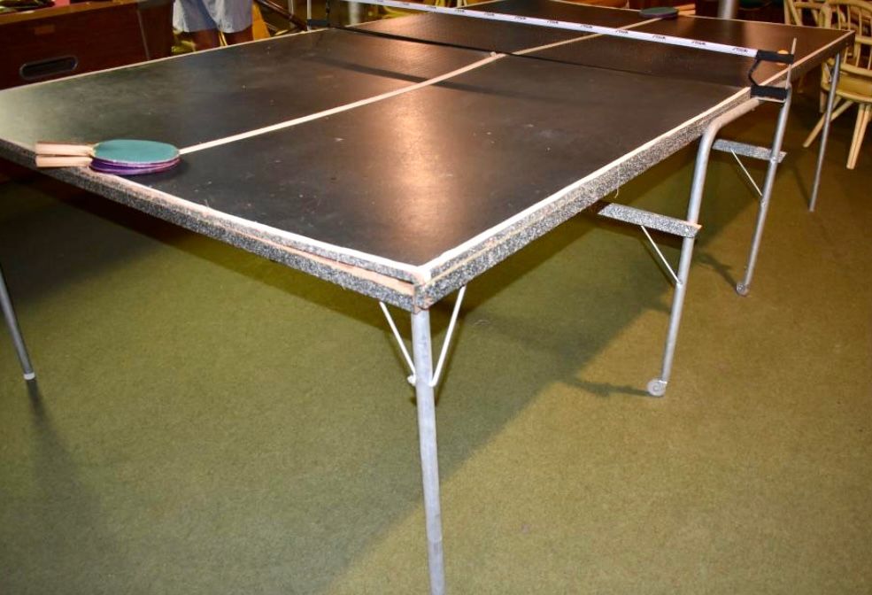 A small basketball court and a ping pong table