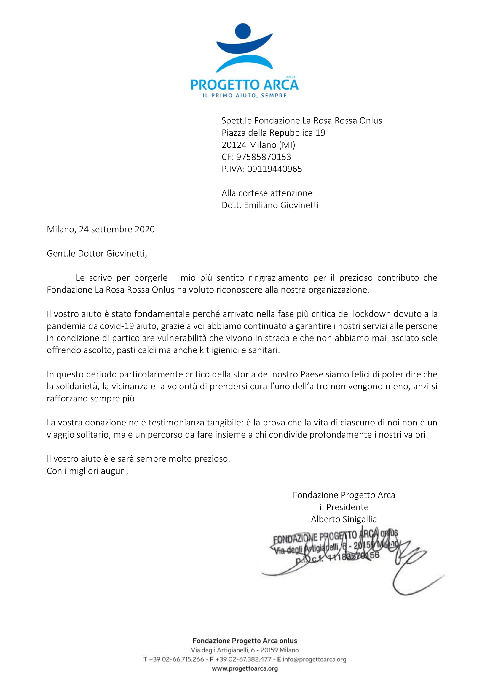We financially support the Arca Onlus Project, which gives concrete aid to poor and unattached people, forced to live on the street; families who have lost their homes and the elderly without protection, children fleeing war and poverty. Aid through: street units, reception, food support and medical assistance.